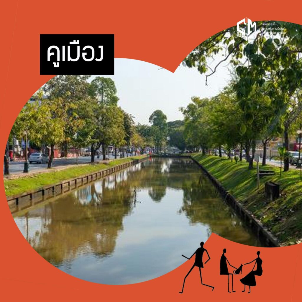 🟡 “คูเมือง” – รับน้ำจากลำเหมืองสู่พื้นที่เมือง ลงจุดผันน้ำแห่งแรก “แจ่งหัวริน” ไปจนครบทั้ง 4 ด้านของเมืองเก่า รวมถึงการเชื่อมต่อ ”คลองแม่ข่า” ที่หล่อเลี้ยงภาคเกษตรกรรมบริเวณพื้นที่ฝั่งทิศตะวันออก ซึ่งประสบปัญหาน้ำเน่าเสียและการเชื่อมต่อไหลเวียนของน้ำที่ขาดหายไปในช่วงเวลาหนึ่ง